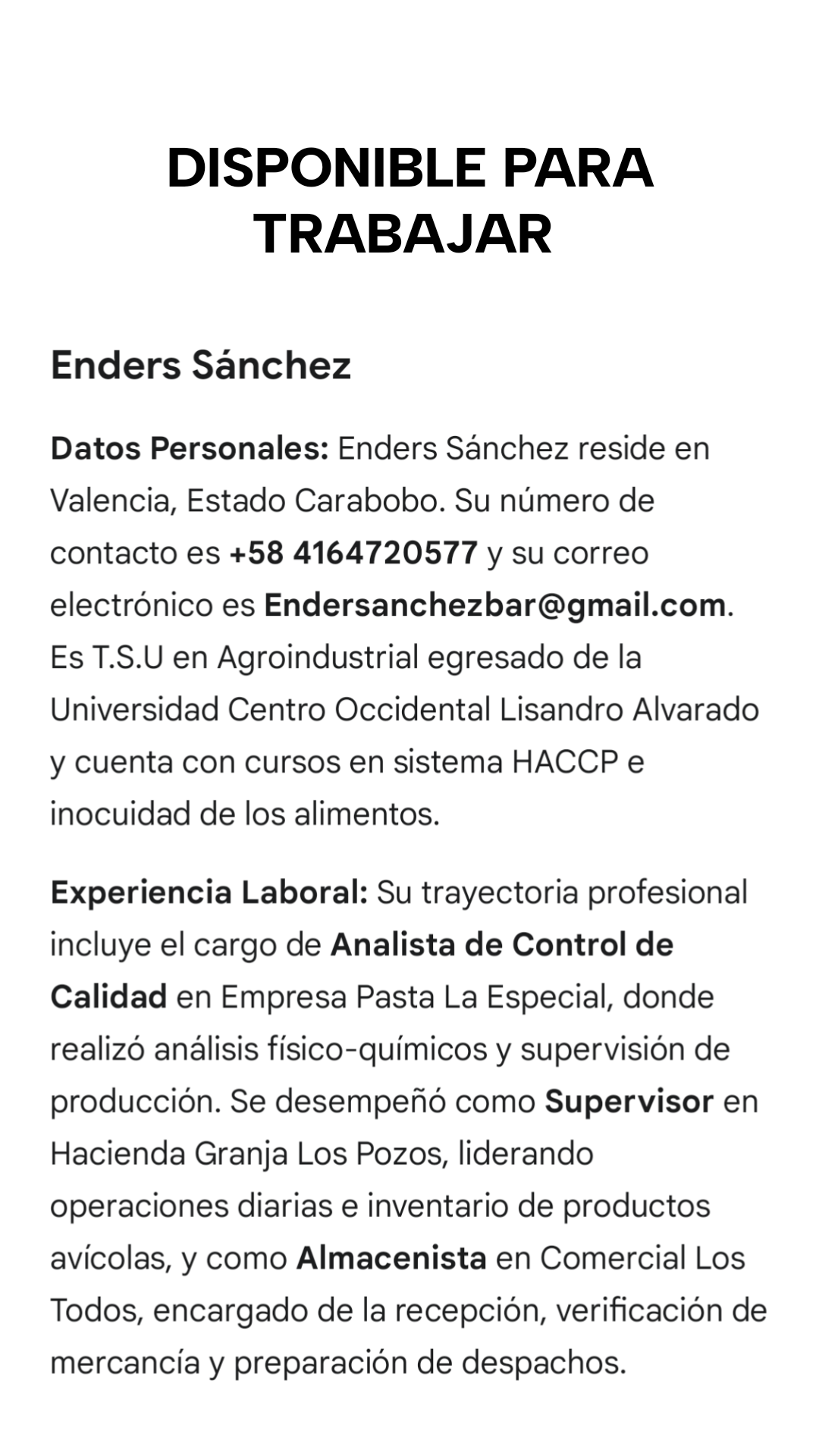 OFERTA DE EMPLEO VALENCIA ¡ÚNETE A NUESTRO EQUIPO! La Casa de la Barquilla está en la búsqueda de talento para formar parte de su equipo de trabajo. Vacantes Disponibles: Asistente administrativo. Asesores de ventas al mayor. Chofer. Operadores integrales de producción. Operador integral de almacén e inventario. Operador integral de finca. ¿Cómo postularse? Si cumples con el perfil y deseas formar parte de nuestra empresa, envía tu síntesis curricular actualizada al siguiente correo electrónico: barquilla.rrhh2026@gmail.com