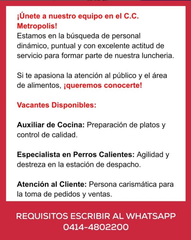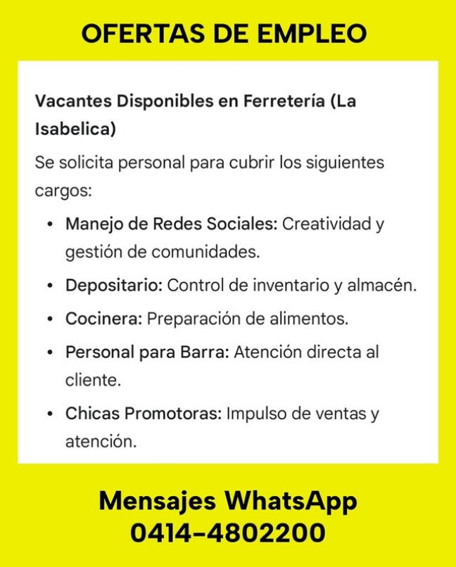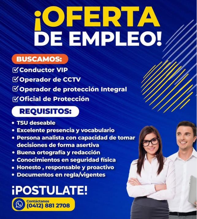 ¿Buscas Empleo? Encuentra el trabajo que buscas con nosotros. Suscríbete a nuestro Banco de Empleos y obtendrás la información de empresas que están buscando a personal en Valencia y Maracay. Más información vía WhatsApp al 0414-480.22.00.