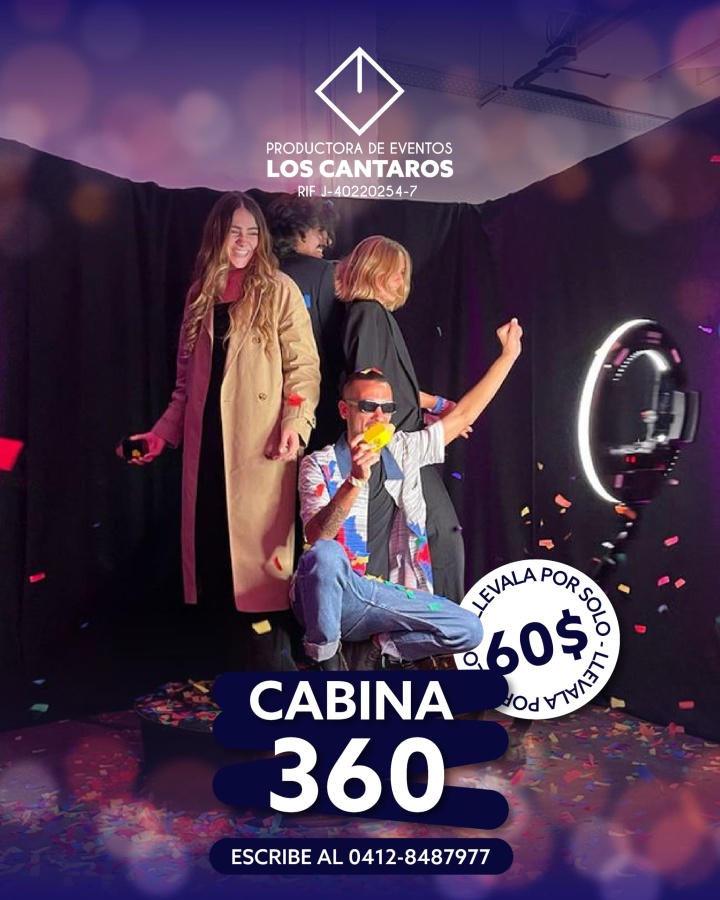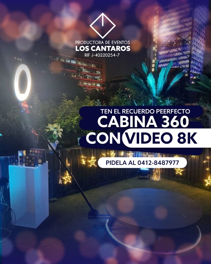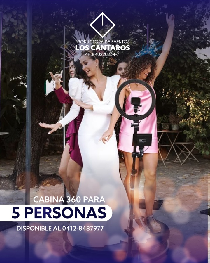 PRODUCTORA DE EVENTOS LOS CANTAROS. Cabina 360 con video 8K, y ten el recuerdo perfecto. Disponible al 0412-848.79.77.