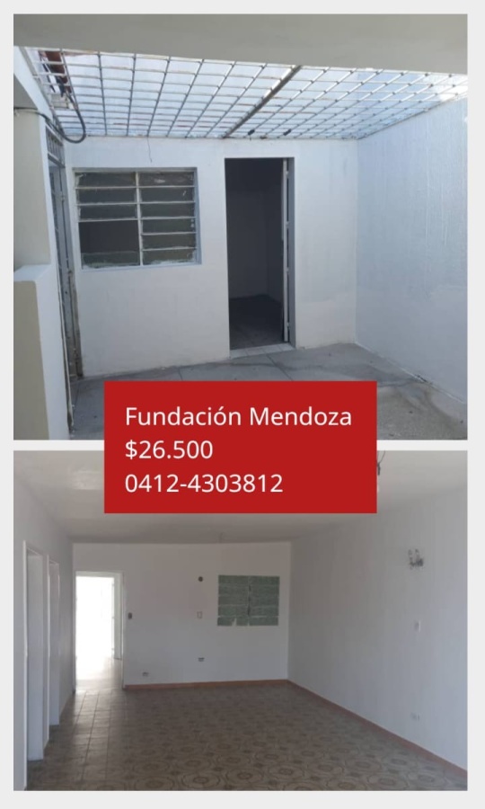 SUBRANCA INMOBILIARIA ofrece en venta, casa en Fundación Mendoza - Carabobo, Venezuela. Terreno 220 Mts², Construcción: 110,46 Mts², Terraza: 35,20 Mts², 3 habitaciones con closet, 1 habitación de servicio con baño, 1 baño principal, cocina empotrada sencilla, sala amplia, porche, estacionamiento. PLUS: Totalmente enrejada y techada, impermeabilizada recientemente, agua constante. Deja: campana, tanque de 1.500 litros, cerca de panaderías, metro de valencia, av. Las Ferias, farmacias. Venta por poder/ sucesión. Lista para la firma. Cédula catastral vigente. Ref: 26.500$ negociable. Interesados contactarnos a través del 0412-430.38.12.
