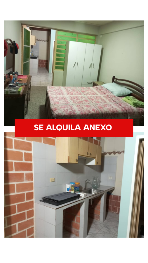 SE ALQUILA ANEXO EN SAN DIEGO LOS JARALES. Entrada independiente, piso alto, 27 Mts², equipado, wifi, 1 habitación, sala y comedor, cocina empotrada, cocina 4 hornillas a gas con bombona llena, nevera, cama matrimonial, escaparate, 1 puesto de estacionamiento. Se aceptan parejas.Trato directo con el dueño. Canon de arrendamiento $140Interesados comunicarse al 0424-496.52.52, 0416-646.83.10.