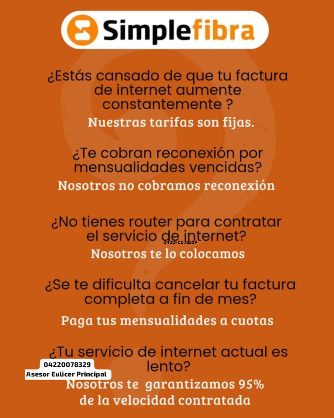Simple Fibra. Asesor Eulicer Principal. Contacto 0422-007.83.29