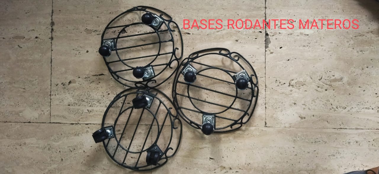 Se vende set de tres (3) bases rodantes para materos, en hierro, con ruedas giratorias. Información 0414-348.06.46