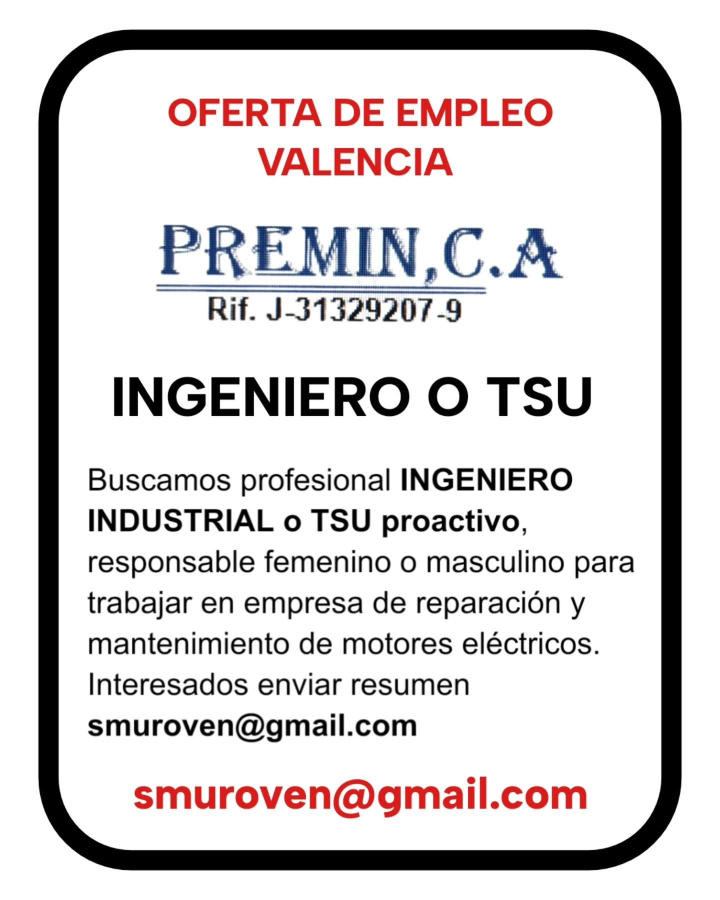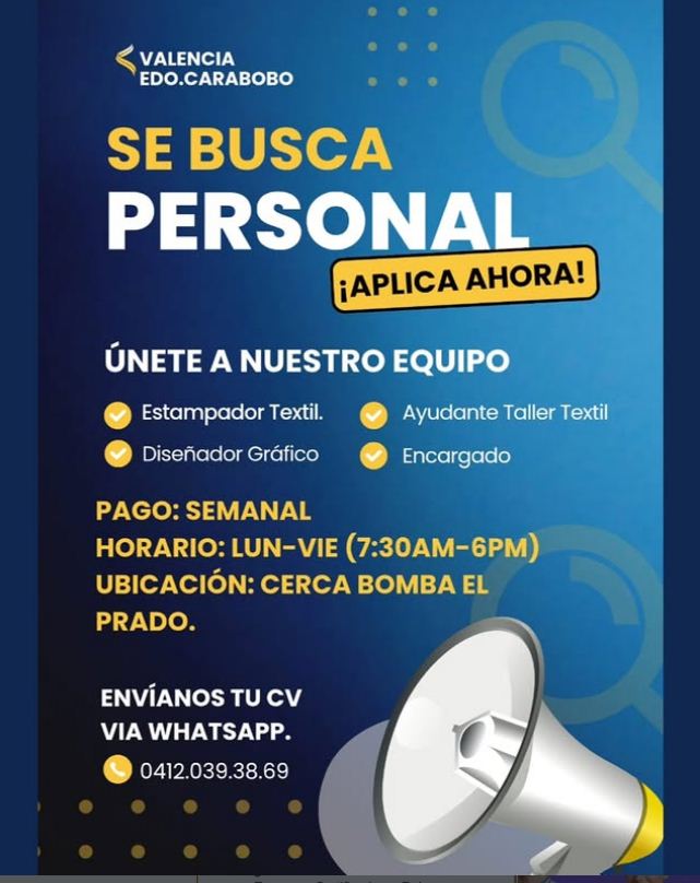 ¿Buscas Empleo? Encuentra el trabajo que buscas con nosotros. Suscríbete a nuestro Banco de Empleos y obtendrás la información de empresas que están buscando a personal en Valencia y Maracay. Más información vía WhatsApp al 0414-480.22.00.