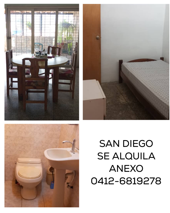 En alquiler ANEXO, en La Esmeralda, San Diego. Canon $150. Negociación: 1 mes adelantado + 1 mes deposito + contrato + COMISIÓN 1 MES. Internet. Información al 0414-275.72.13