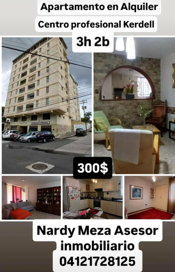 EN ALQUILER APARTAMENTO, ubicado en Centro Profesional Kerdell, Valencia Edo. Carabobo. 3 habitaciones, 2 baños. Canon $300. Información al 0412-172.81.25. Nardy Meza Asesor Inmobiliario