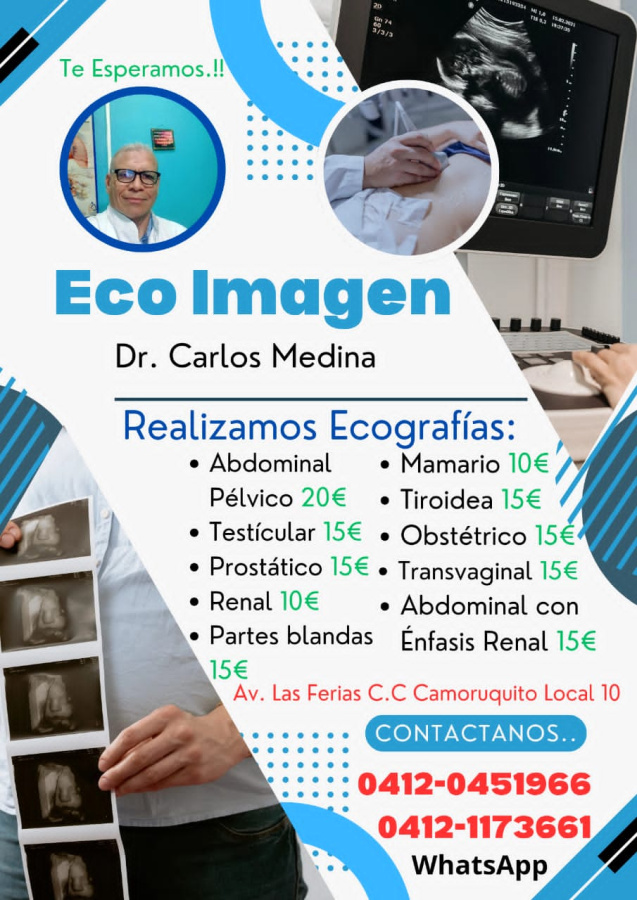 ECO IMAGEN Dr. CARLOS MEDINA. Realizamos ecografías. Contactanos via WhatsApp 0412-045.19.66, 0412-117.36.61