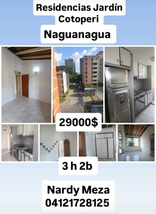 EN VENTA APARTAMENTO, ubicado en Resd. Jardín Cotoperí, Naguanagua Edo. Carabobo. 3 habitaciones, 2 baños. Precio de oportunidad $29.000 Información al 0412-172.81.25. Nardy Meza