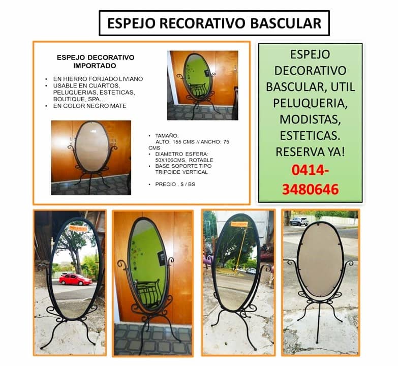 Se vende espejo decorativo bascular, útil para peluquerías, modistas, estéticas. Reserve el suyo ya. Información 0414-348.06.46