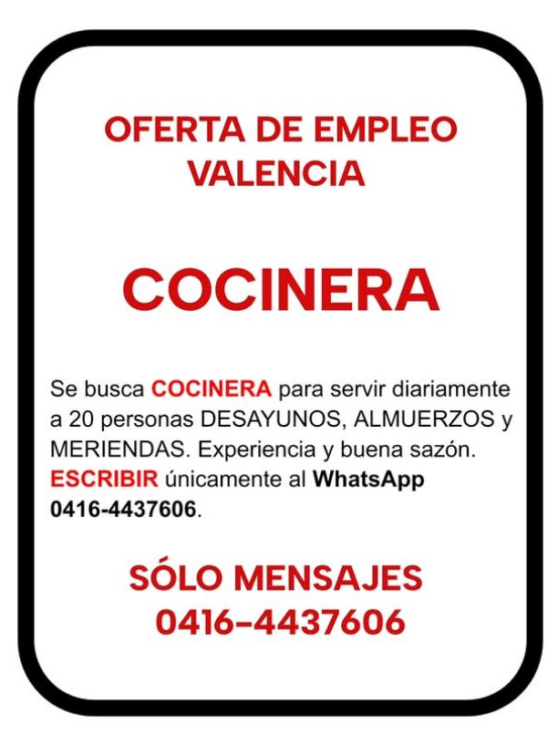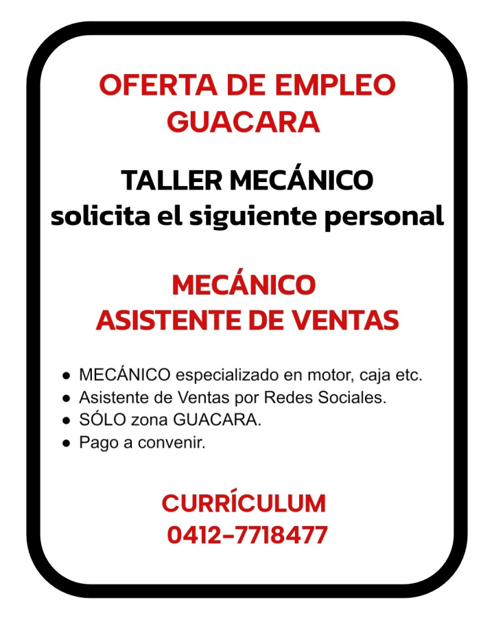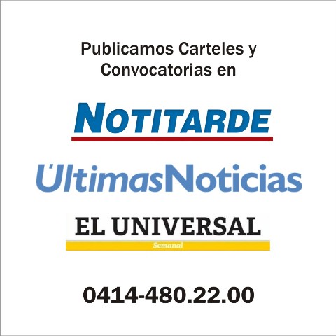 Publicamos avisos de empleos, compra venta de inmuebles, vehículos, terrenos, ventas de garage, servicios, convocatorias. Publicamos en REDES SOCIALES, tenemos planes especiales para INMOBILIARIAS Y CORREDORES INMOBILIARIOS. Envíe su aviso por WHATSAPP y le cotizamos, paga con depósito, transferencia o pago móvil. Contáctenos al 0414-480.22.00