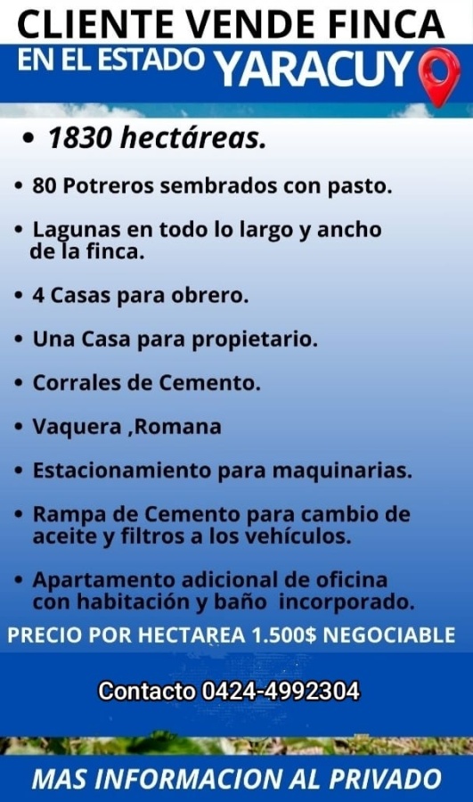 CLIENTE VENDE FINCA EN YARACUY. Contáctanos para más detalles. Agente inmobiliario María Elena Medina B. 0424-499.23.04 WhatsApp